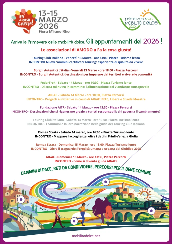 Gli eventi culturali di TCI, Romea Strata, BAI, FederTrek, Fondazione AITR e AIGAE a Fa la cosa giusta! 2026