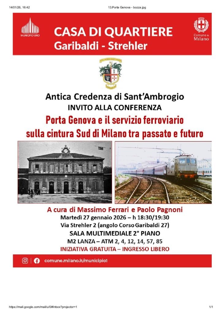 27 gennaio – Porta Genova e il servizio ferroviario sulla cintura Sud di Milano tra passato e futuro