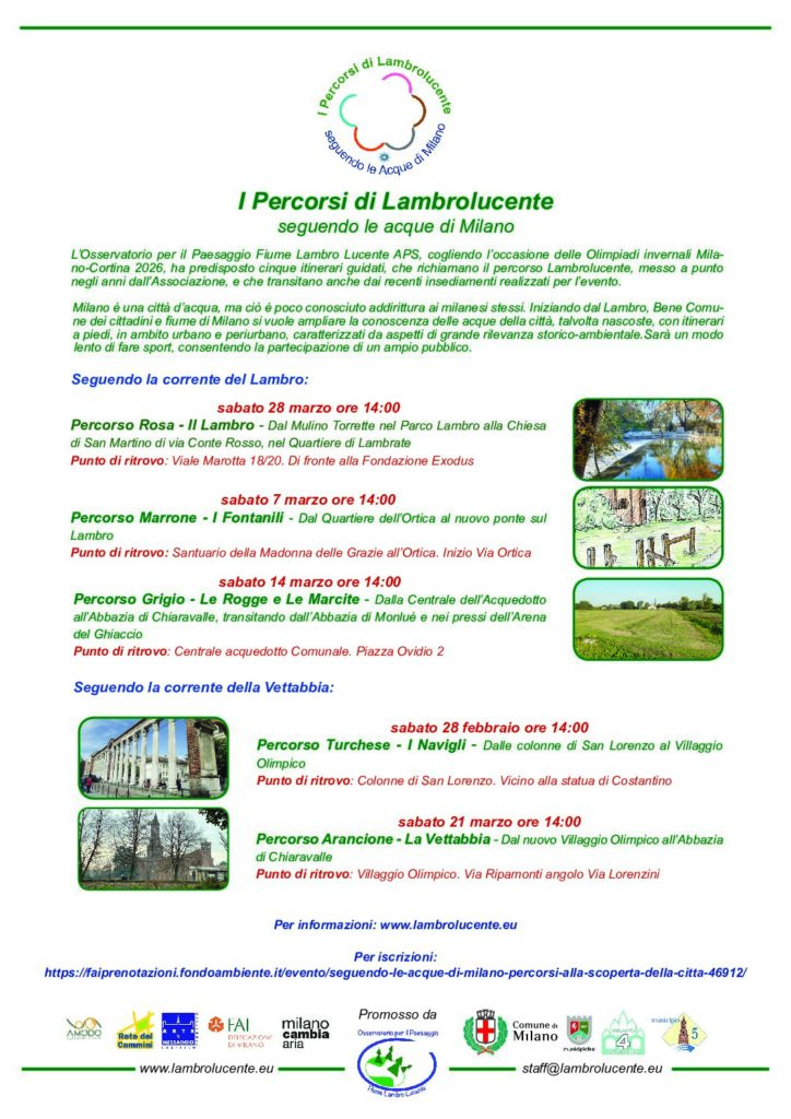 L’Osservatorio per il Paesaggio Fiume Lambro Lucente APS, cogliendo l’occasione delle Olimpiadi invernali Milano-Cortina 2026, ha predisposto cinque itinerari guidati, che richiamano il percorso Lambrolucente, messo a punto negli anni…