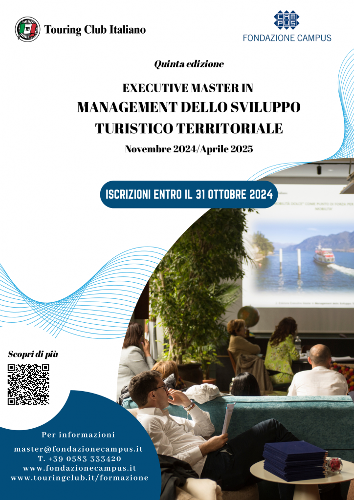 maggiori informazioniDopo il successo delle prime quattro edizioni, prenderà il via a novembre 2024 la quinta edizione dell’Executive Master in Management dello Sviluppo Turistico Territoriale (cliccare qui per conoscere i dettagli) organizzato da Touring Club…