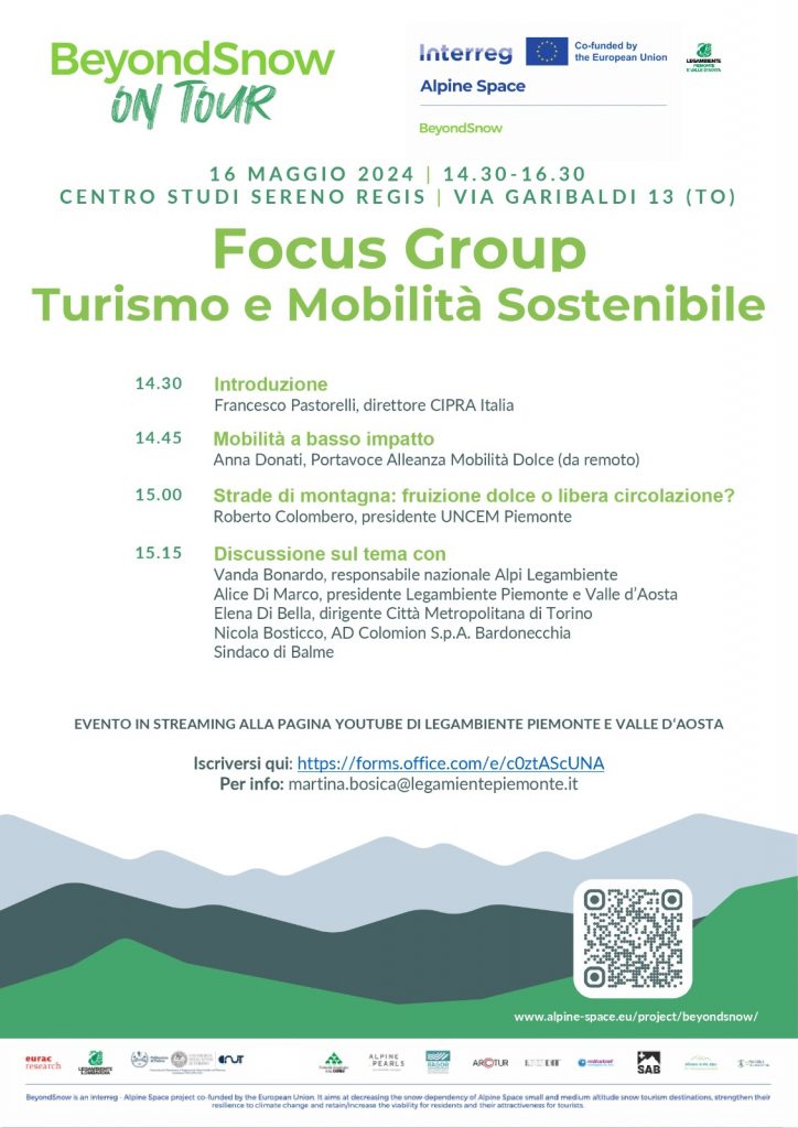 maggiori informazioniIl 16 maggio prossimo presso il centro studi Sereno Regis in via Garibaldi 13 a Torino si terrà il Focus Group Turismo e mobilità sostenibile. Partecipa Anna Donati, portavoce AMODO.…
