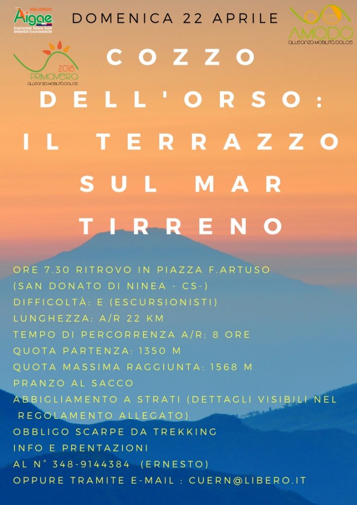 maggiori informazioniAIGAE (membro AMoDo) organizza per domenica 22 aprile un’escursione nel Parco Nazionale del Pollino, con paesaggi e vedute eccezionali. Scarica programma e regolamento