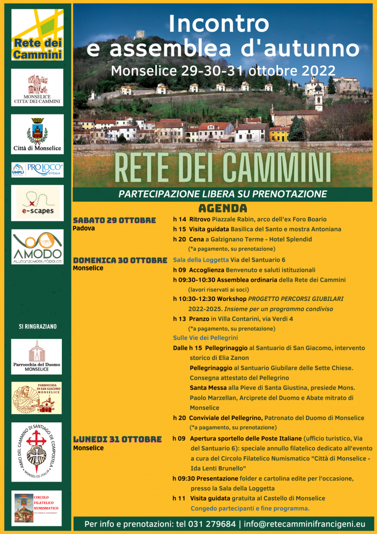La RETE DEI CAMMINI ETS corona il 2022, 13° anno di attività, con il tradizionale INCONTRO D’AUTUNNO, in uno scenario ancora una volta davvero speciale: Monselice, la città coronata da…
