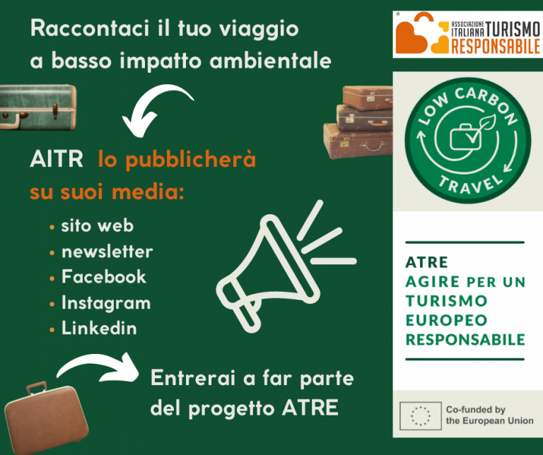 A.I.T.R. – Associazione Italiana Turismo Responsabile sta raccogliendo le buone pratiche a basso impatto ambientale del mondo del turismo: mobilità, ricettività, ristorazione, ecc. Lavori in una azienda o associazione del settore…