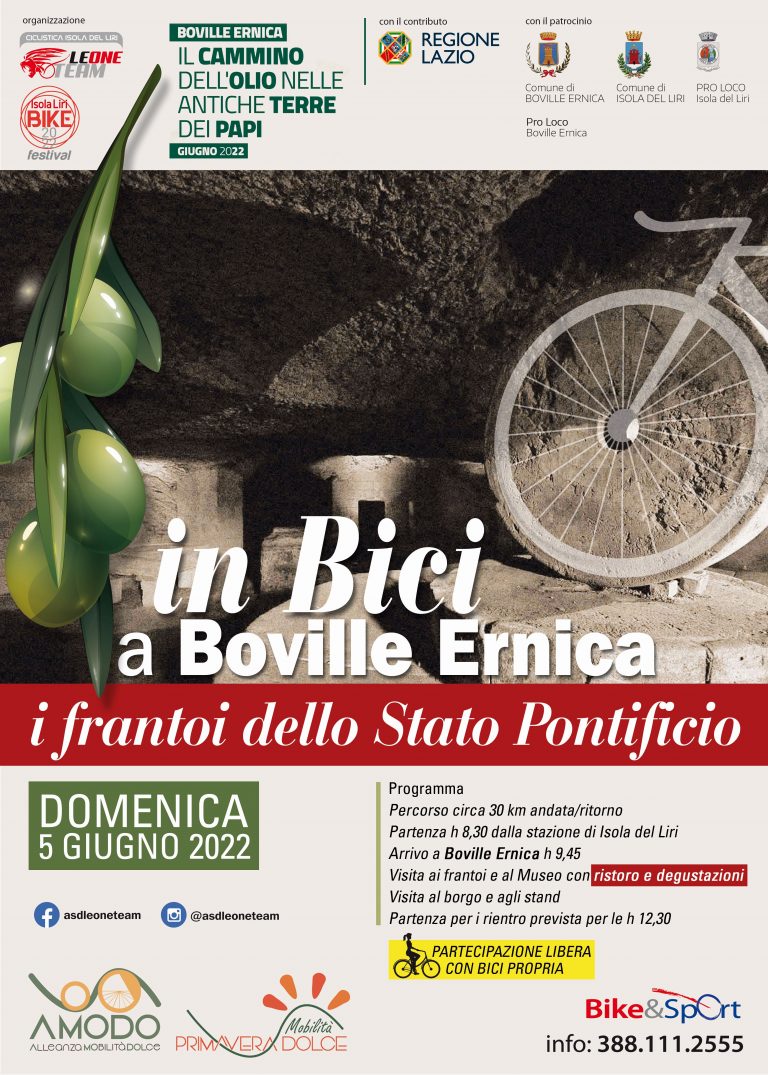 Domenica 5 giugno in bici a Boville Ernica, evento organizzato nell’ambito della Primavera della mobilità dolce. Per il programma, consultare la locandina in evidenza.